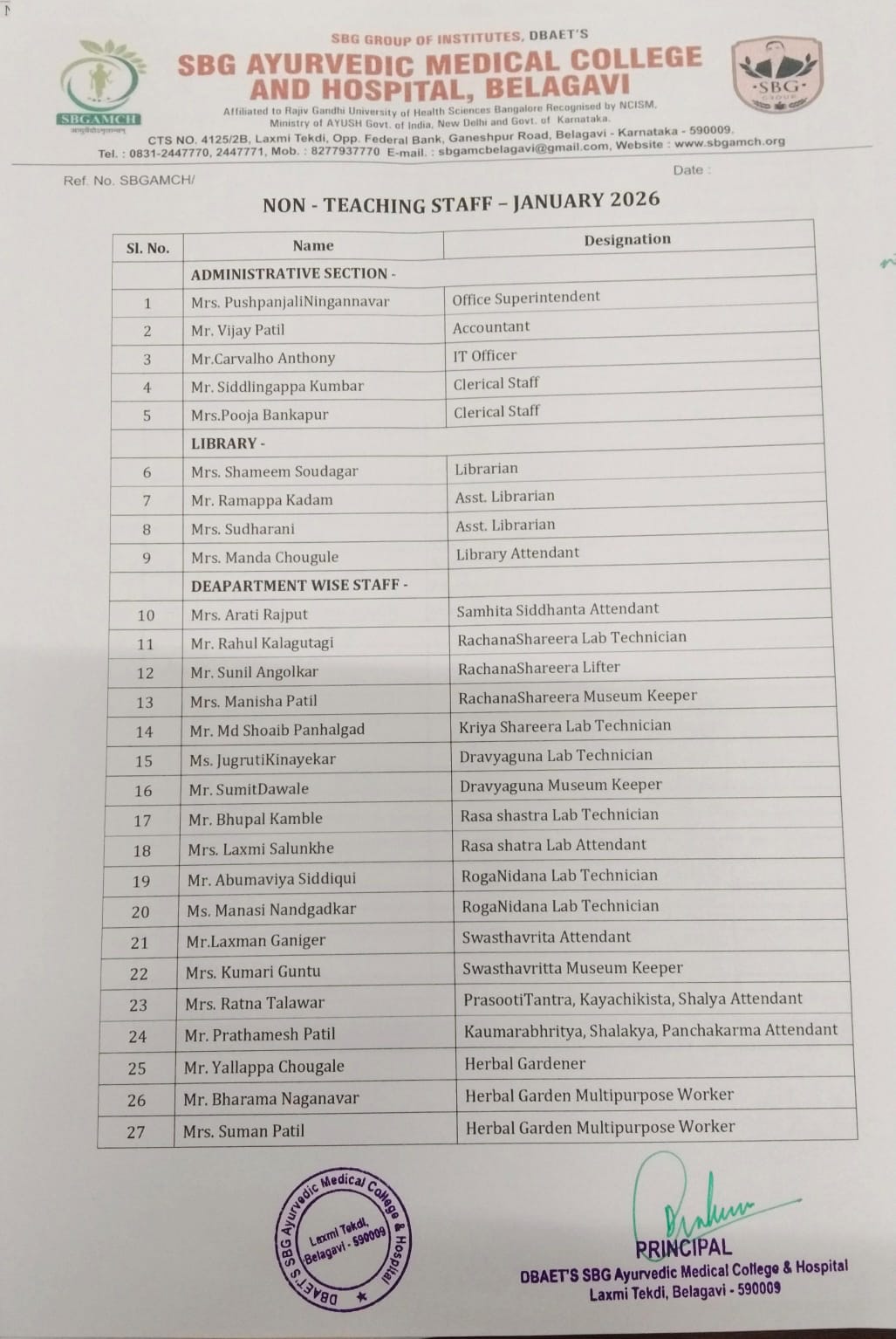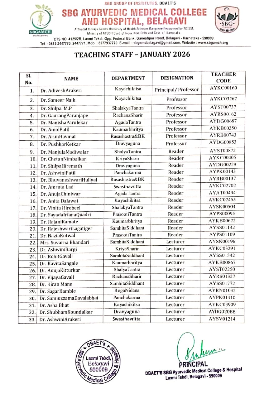 SBG Ayurvedic medical college and hospital Staff